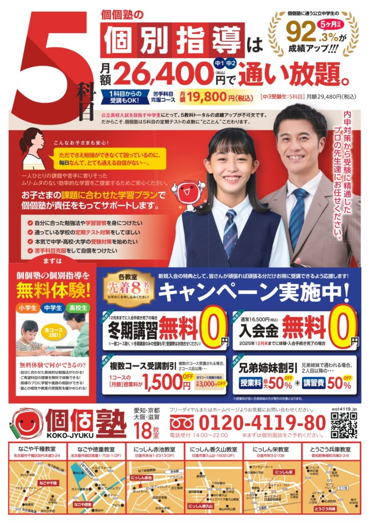 日進市香久山の個別指導塾『個個塾にっしん香久山教室』です。