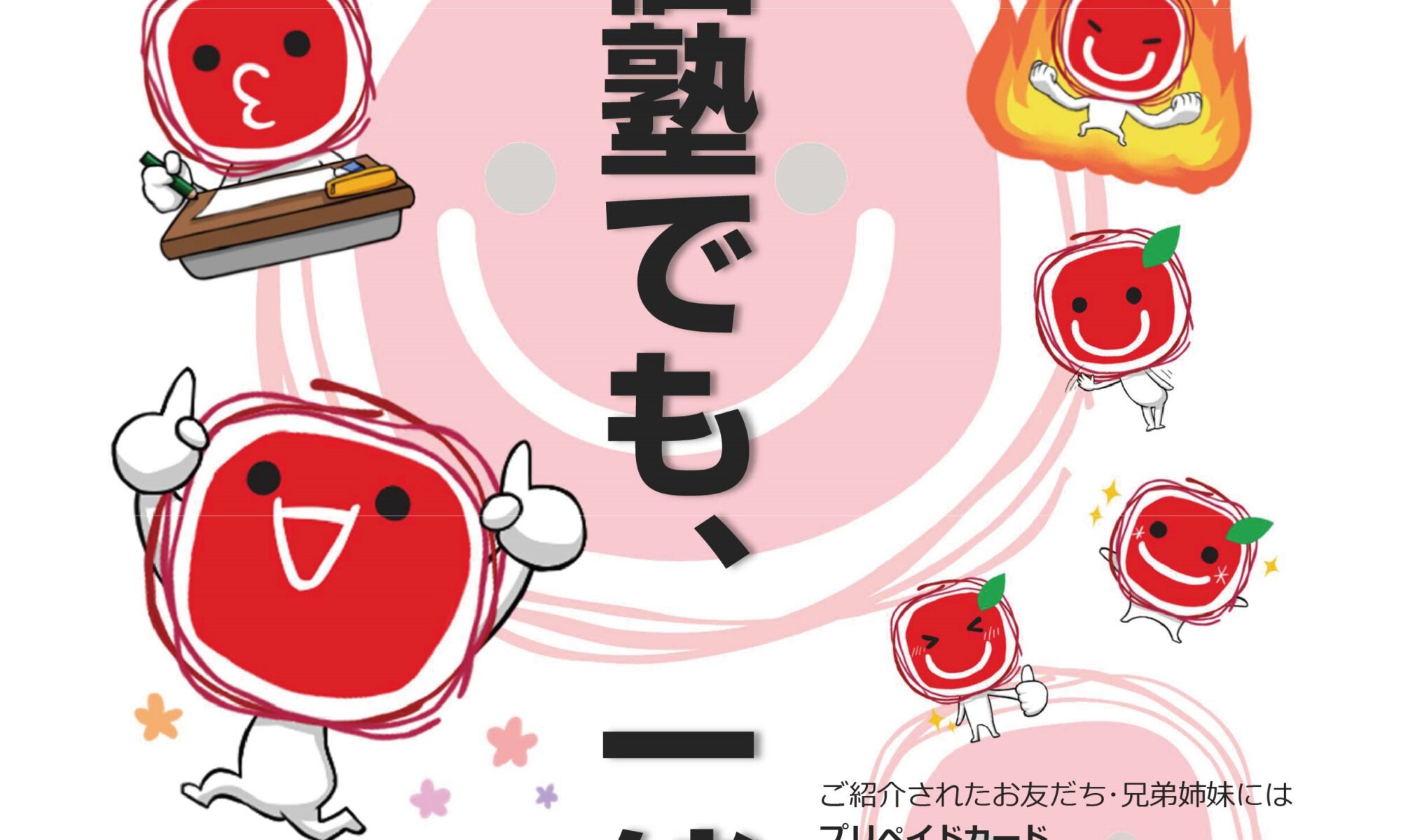 投稿日: 04/03/202606/03/2026 お知らせ いつもよりお得な紹介キャンペーン 現在、いつもよりお得な紹介キャンペーンを実施中です。お友だちやご兄弟姉妹の方で、塾をご検討の方をぜひご紹介ください!以下の特典は、お相手様から2026年4月26日までにご入会意思を頂いた場合に適用いたします。 ◆ご紹介の … “いつもよりお得な紹介キャンペーン” の続きを読む